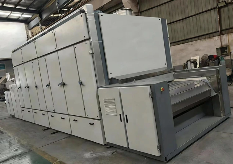 5. အခြောက်ခံပြီးနောက် တူညီသော ဖိုင်ဘာအပူချိန်ကို သေချာစေရန် အဝင်ပေါက်နှင့် ထွက်ပေါက်တွင် လေအေးကို ထုတ်ယူသည်။